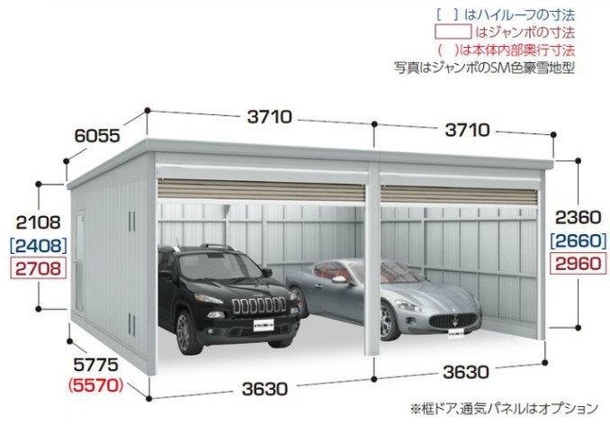 イナバガレージ ガレーディア GRN-3657HL-2 ハイルーフ [2台収納タイプ]