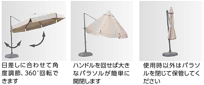 支柱が外にあるので傘下空間を自由にご利用いただけます。