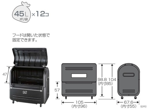| 容量 | 560L(ゴミ袋45L×12袋相当) |