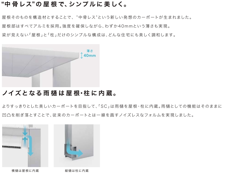 住宅との調和を追求し、シンプルにこだわったデザイン。 耐風圧強度 風速49m/秒相当、屋根が遮光タイプで、太陽の熱線や紫外線から愛車を守ります。 【柱・梁 色: シャイングレーF/ナチュラルシルバーF/ブラック】 【屋根 色: シャイングレーF/ナチュラルシルバーF/ブラック】 ※柱・梁の色と屋根の色を異なるカラーで組み合わせることも可能です。 ・他にも設置場所や用途に応じてサイズバリエーションが豊富です。