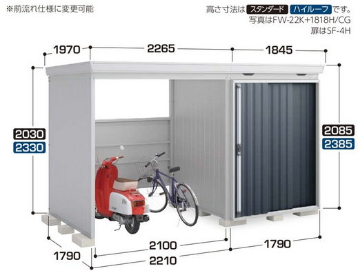 使い勝手に合わせて物置と開放スペースの左右の仕様をお選びいただけます。