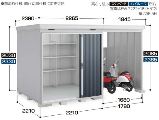 イナバ物置 フォルタ ウィズ 右側スペース型 FW-2222+18KS(多雪型) スタンダード
