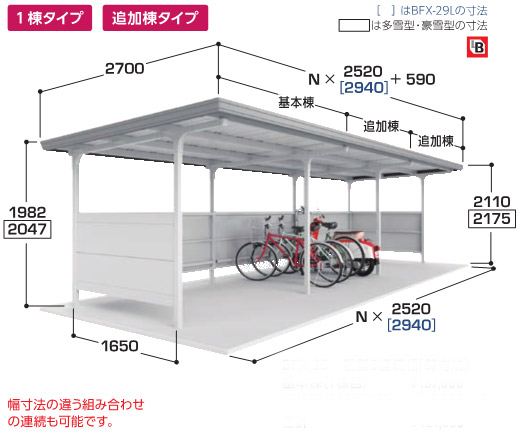 イナバ 両支持柱 直線屋根 腰パネル付 基本棟 一般型 BFX-29